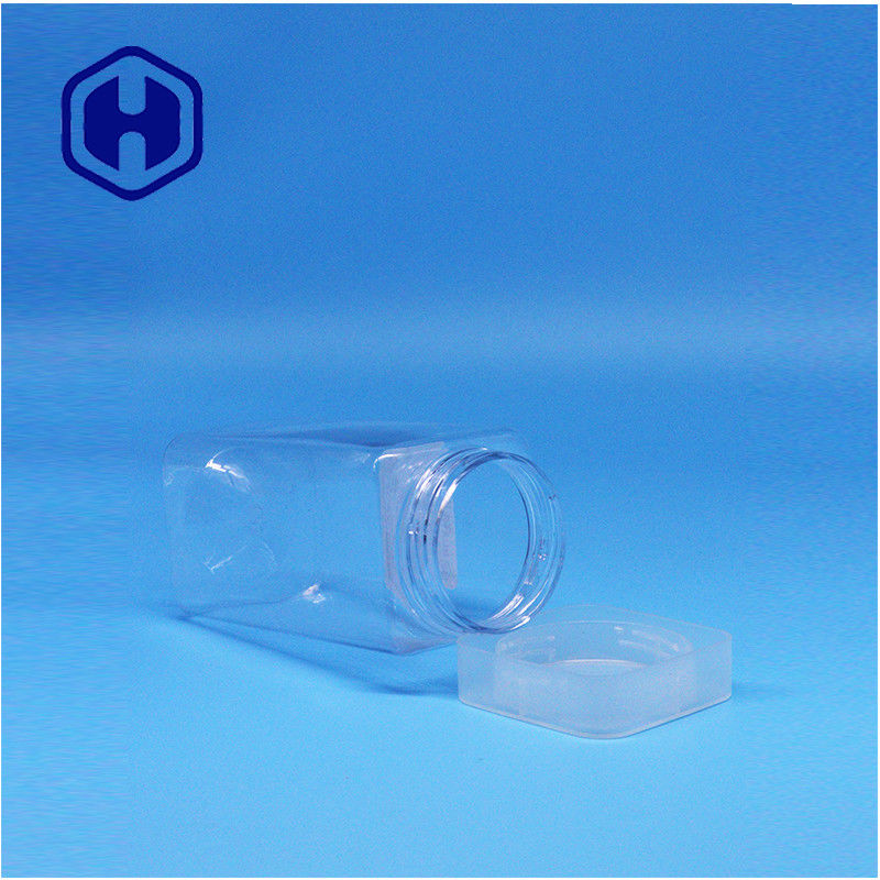 1. شیشه های PET شفاف مربع کره بادام زمینی عمده فروشی-- با گزینه های دو مهر و موم