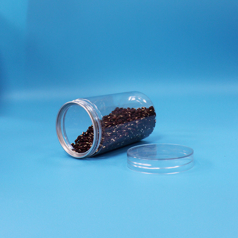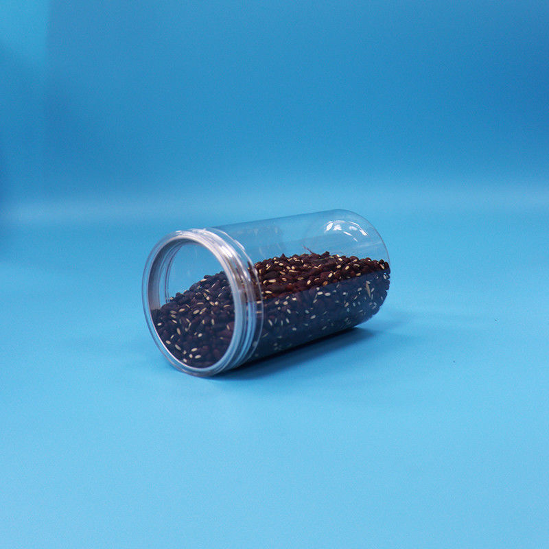 بسته بندی شیشه ای شفاف پلاستیکی گرد سیلندر PET، شیشه آجیل با درب، استاندارد مواد غذایی