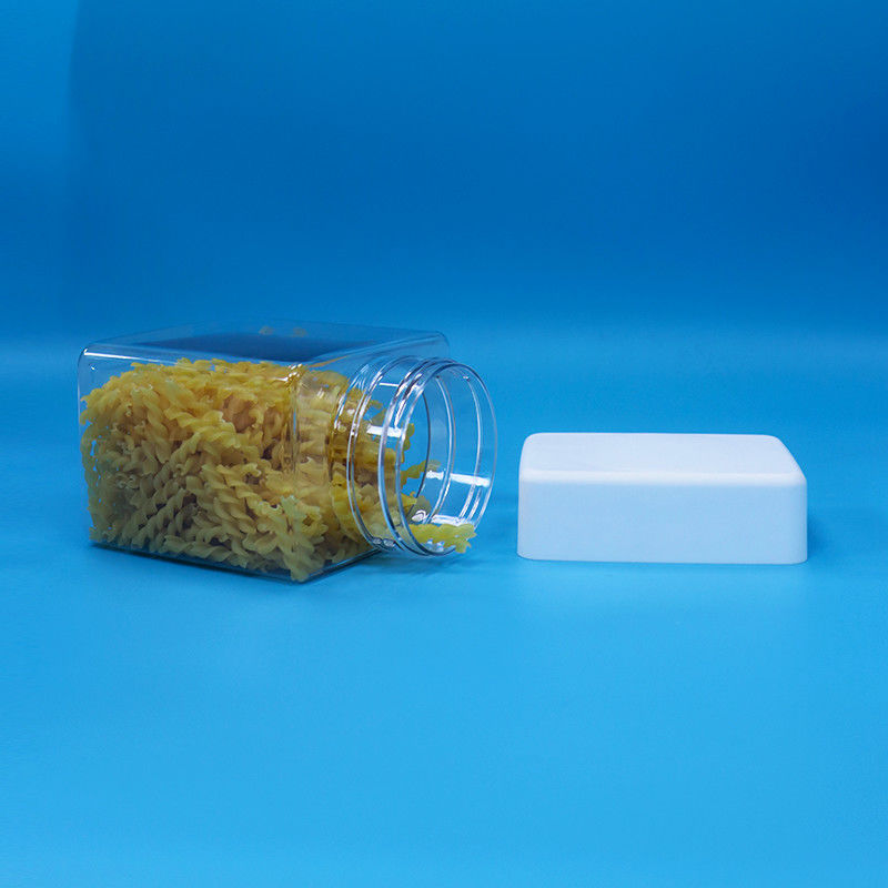 پیت شیرینی میان وعده پلاستیک درجه غذایی شفافیت بطری مربع پیچ بالا کاپ سفید