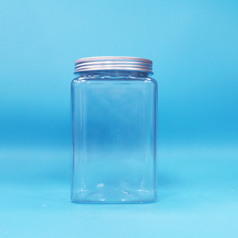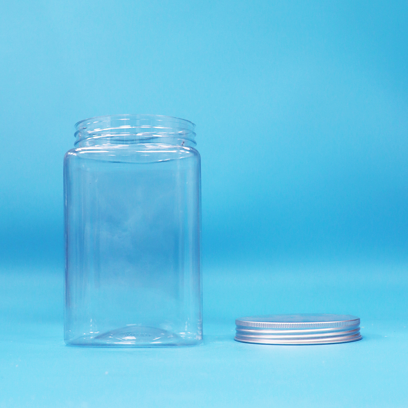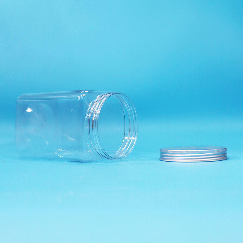 شیشه های پلاستیکی شفاف مربع بدون BPA PET برای رشته فرنگی، آب نبات و درپوش آلومینیومی پیچی