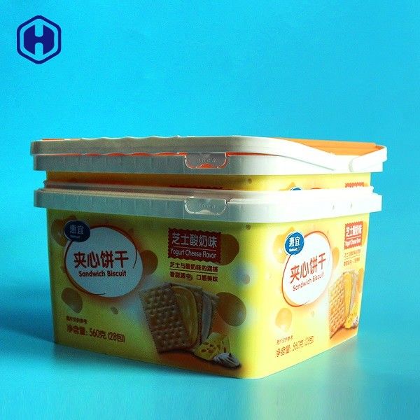بیسکویتهای پلاستیکی IML سطلهای Stackable Square Container Square مواد غذایی خالص PP