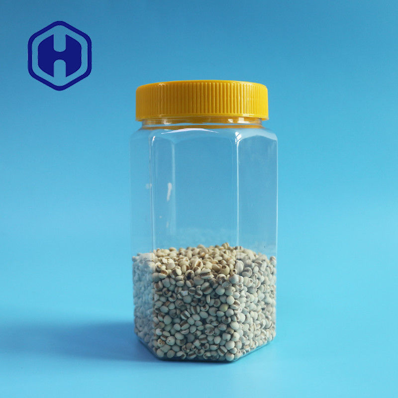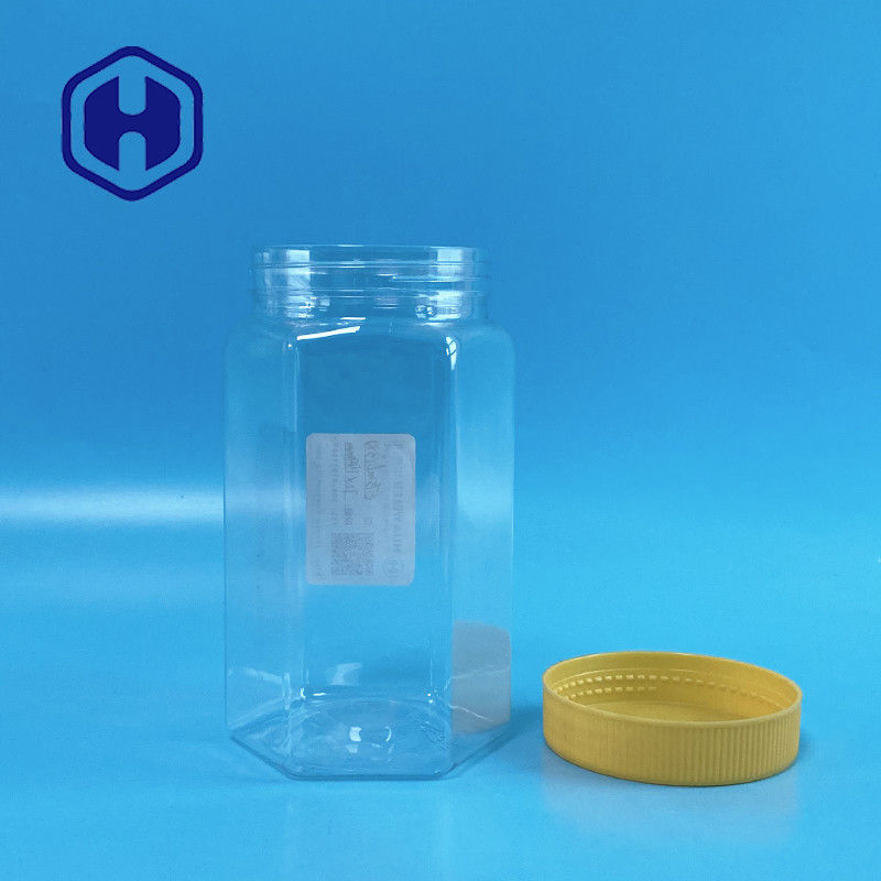 670 میلی لیتر شیشه بسته بندی مواد غذایی پلاستیکی با دهان پهن شش گوش شفاف PET با درب