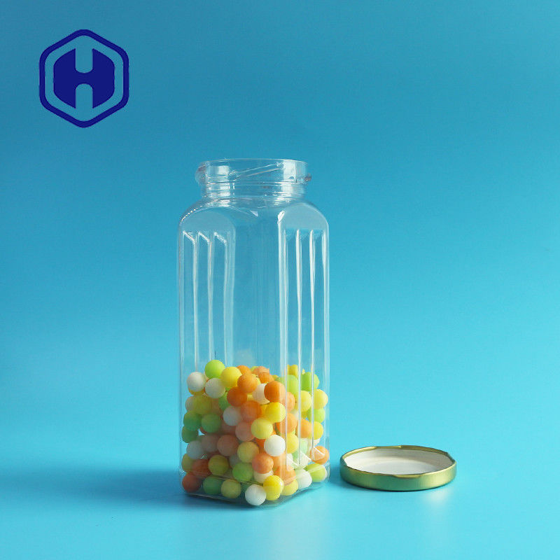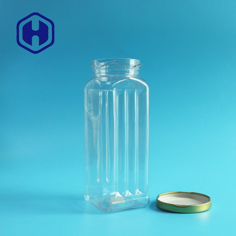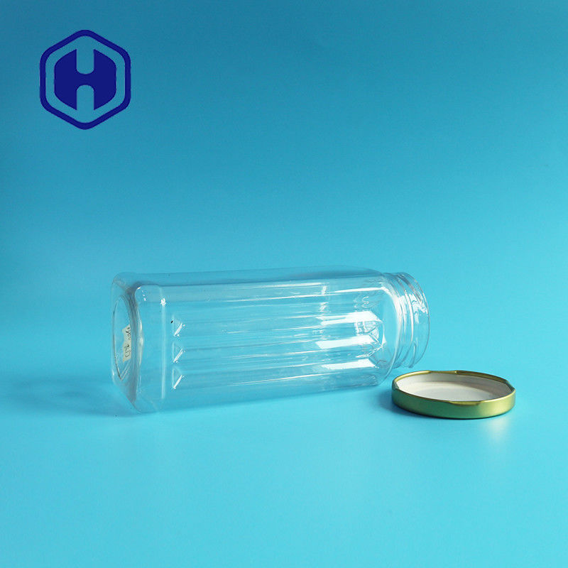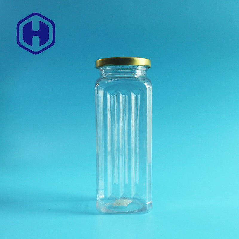 بسته بندی غذای خوراکی شفاف سگ با درب فلزی مربعی قلع شیشه پلاستیکی PET
