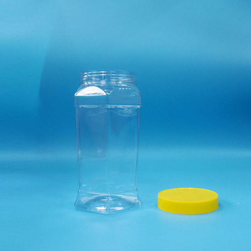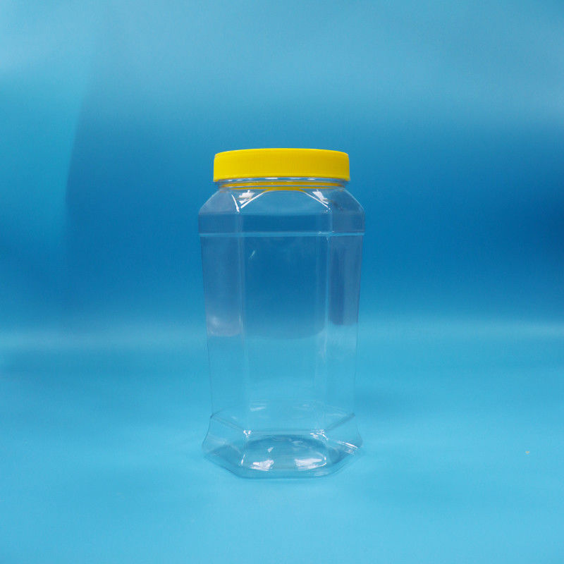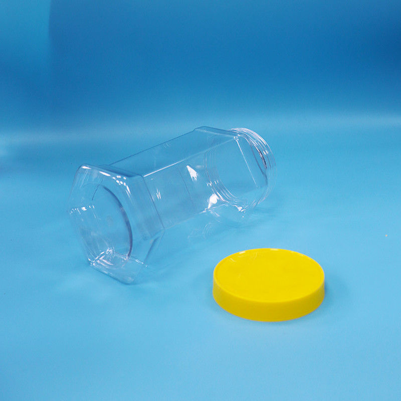 کوکی های درجه غذایی شیرینی شکل هکساگونال شفاف پیت قوطی مواد غذایی کلاه پیچ زرد