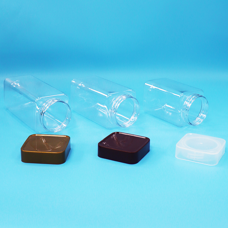 (3) PET transparent square plastic jar is 100% Leak-proof and airtight screw lid, suitable for
