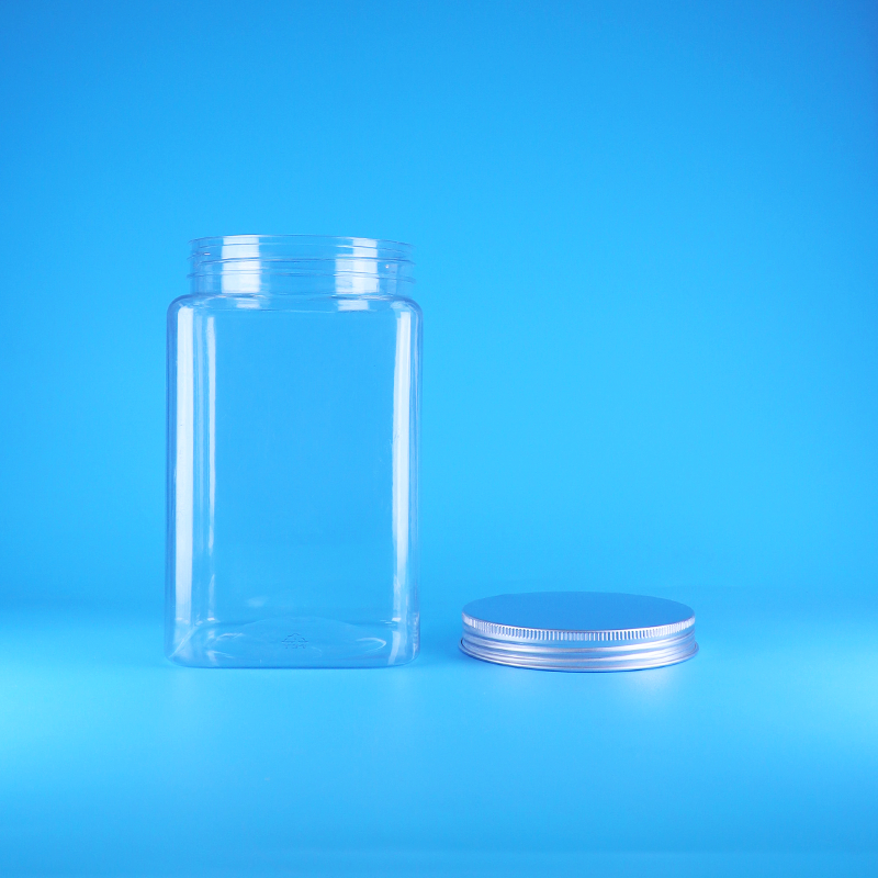 شیشه های پلاستیکی شفاف و ارزان قیمت مربعی شکل چینی PET برای آب نبات، درپوش آلومینیومی پیچی