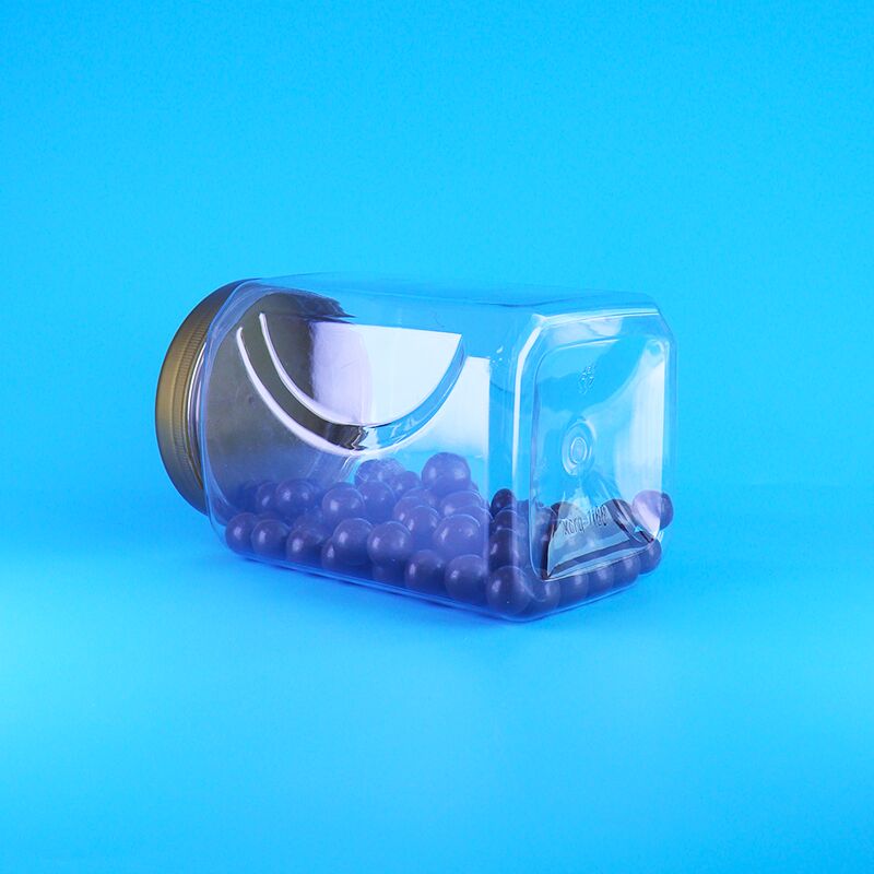 شیشه شفاف قهوه ای PET با درب پلاستیکی درجه مواد غذایی برای آبنبات چوبی، بادام، میوه خشک جک فروت